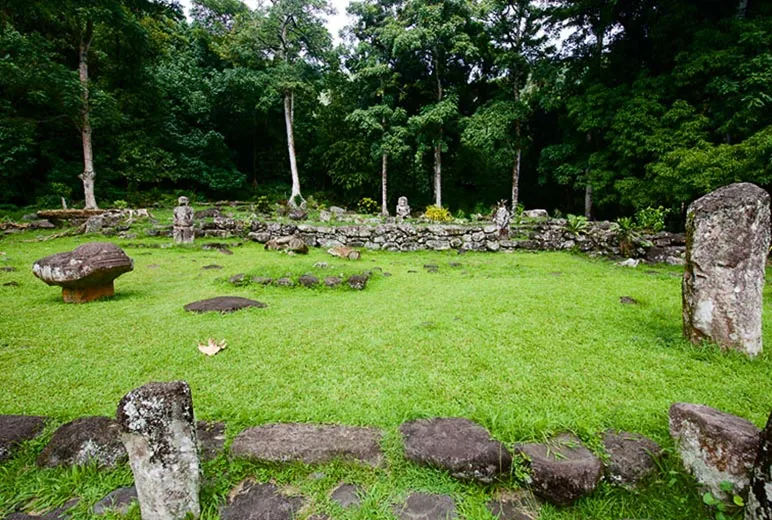 Atuona to Taaoa (Atuona, Marquesas): Discover the ancient tribes of the Taaoa Valley during this memorable journey to their archaeological ruins. The Tiu, ancestors of most of the Hivaoan tribes, and several other tribes once lived in the Taaoa Valley. Their archaeological ruins can be reached by off-road vehicle or on foot. During your ride, you will visit the Upeke Ceremonial Center, which comprises house platforms, a tohua (tribal ceremonial center), public and sacred marae (archaeological ruins), and storage pits of breadfruit paste for feasts.