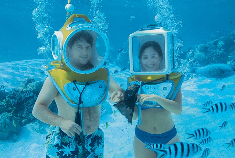 Aquasafari - Underwater Walk (Bora Bora, Society Islands): Discover why Bora Bora’s spectacular lagoon is considered to be among the most beautiful in the world during this unique underwater adventure. As you walk along the sandy bottom past exotic coral formations, you will see an abundance of iridescently colored tropical fish.