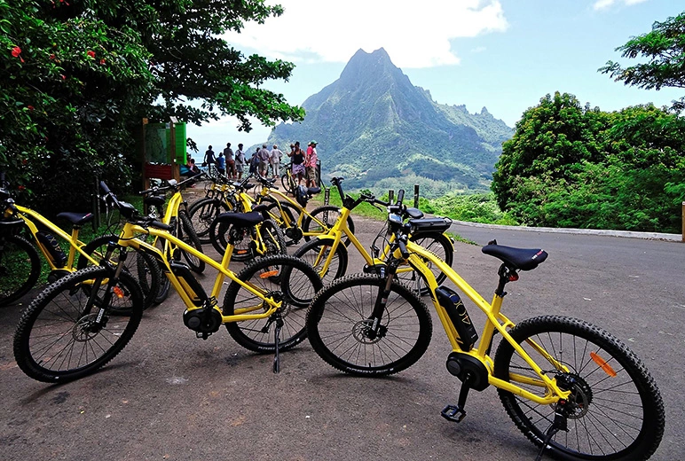 Fast-Paced Belvedere by E-Bike (Moorea, Society Islands): Challenge yourself on this very active and fast-paced guided tour to the Belvedere lookout point. You will start your tour by getting acquainted with your Moustache Mountain E-Bike. The bikes are easy to use with multiple gears that allow you to fully enjoy the roads of Moorea. In addition, the electric motor will assist you when pedaling, and the different settings will make even the less active guests feel like they can win Le Tour de France.
