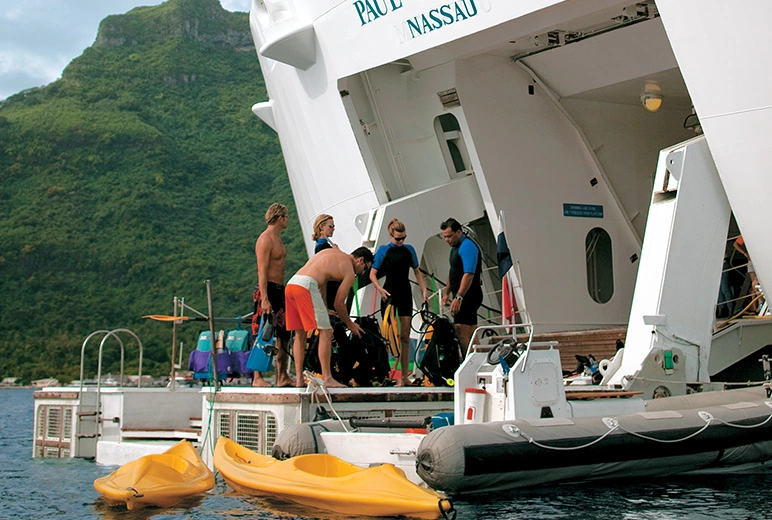 The Gauguin’s specially designed watersports marina turns the ship into your headquarters for all kinds of adventures on the water. It’s as easy as descending to sea level and hopping aboard a paddleboard or launching a kayak.